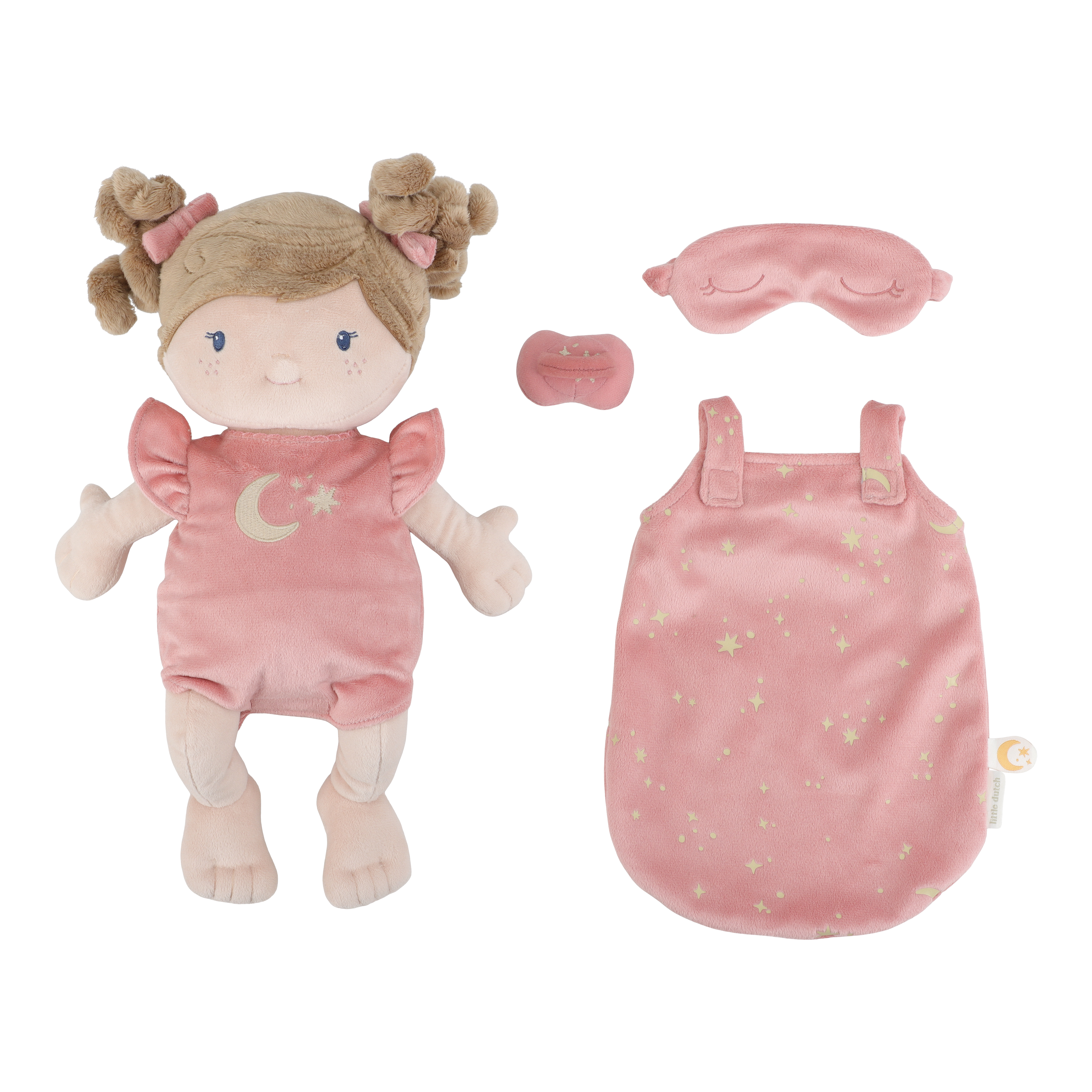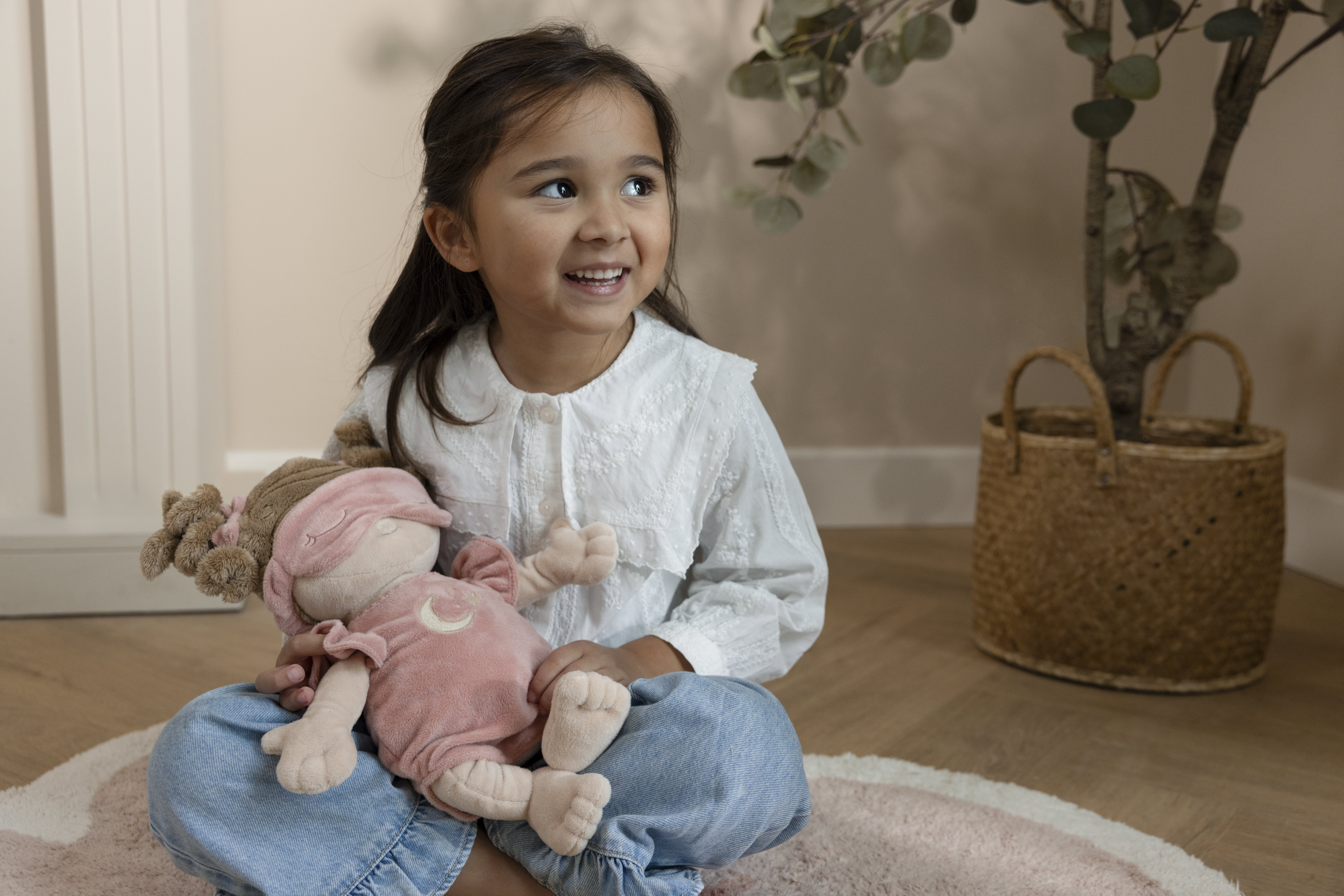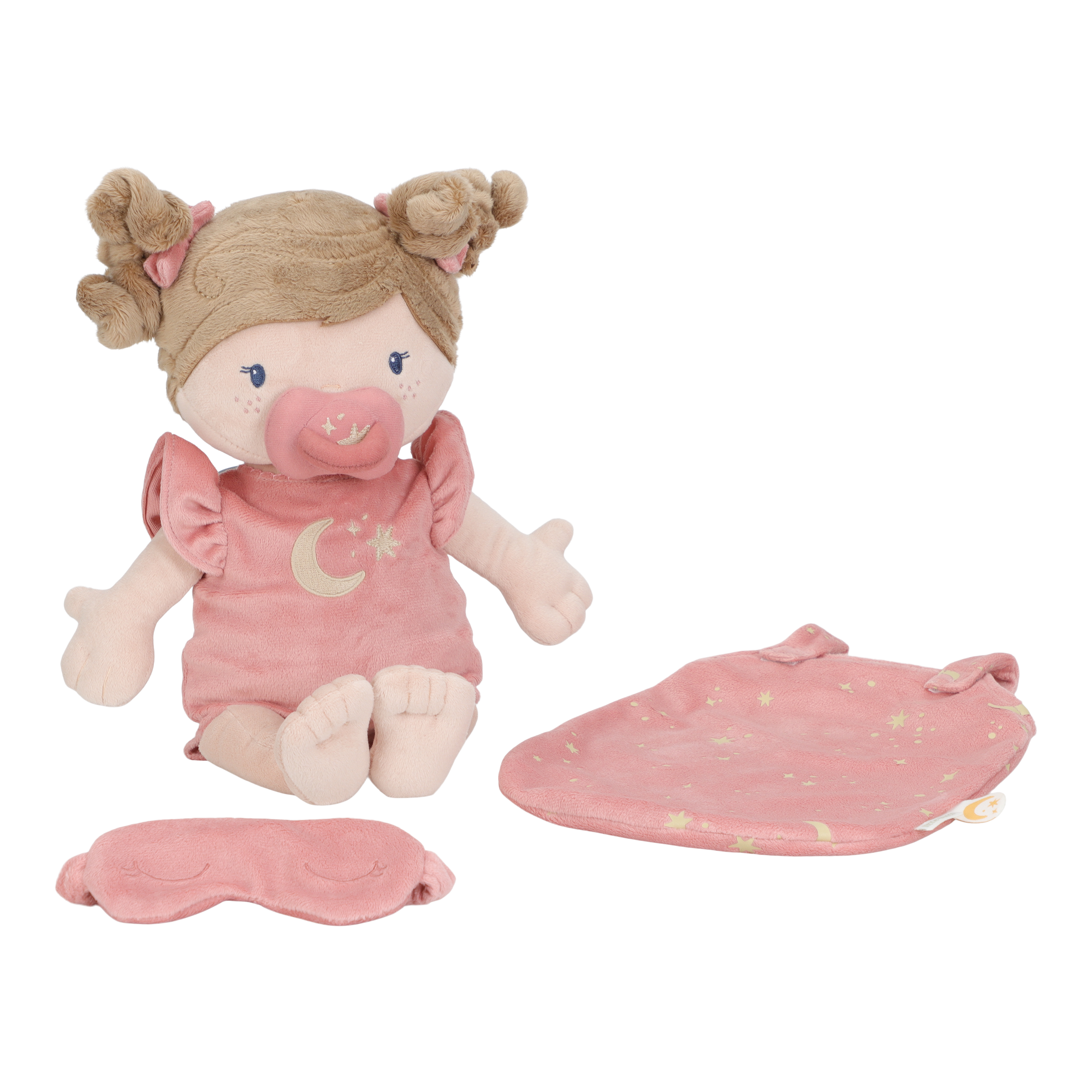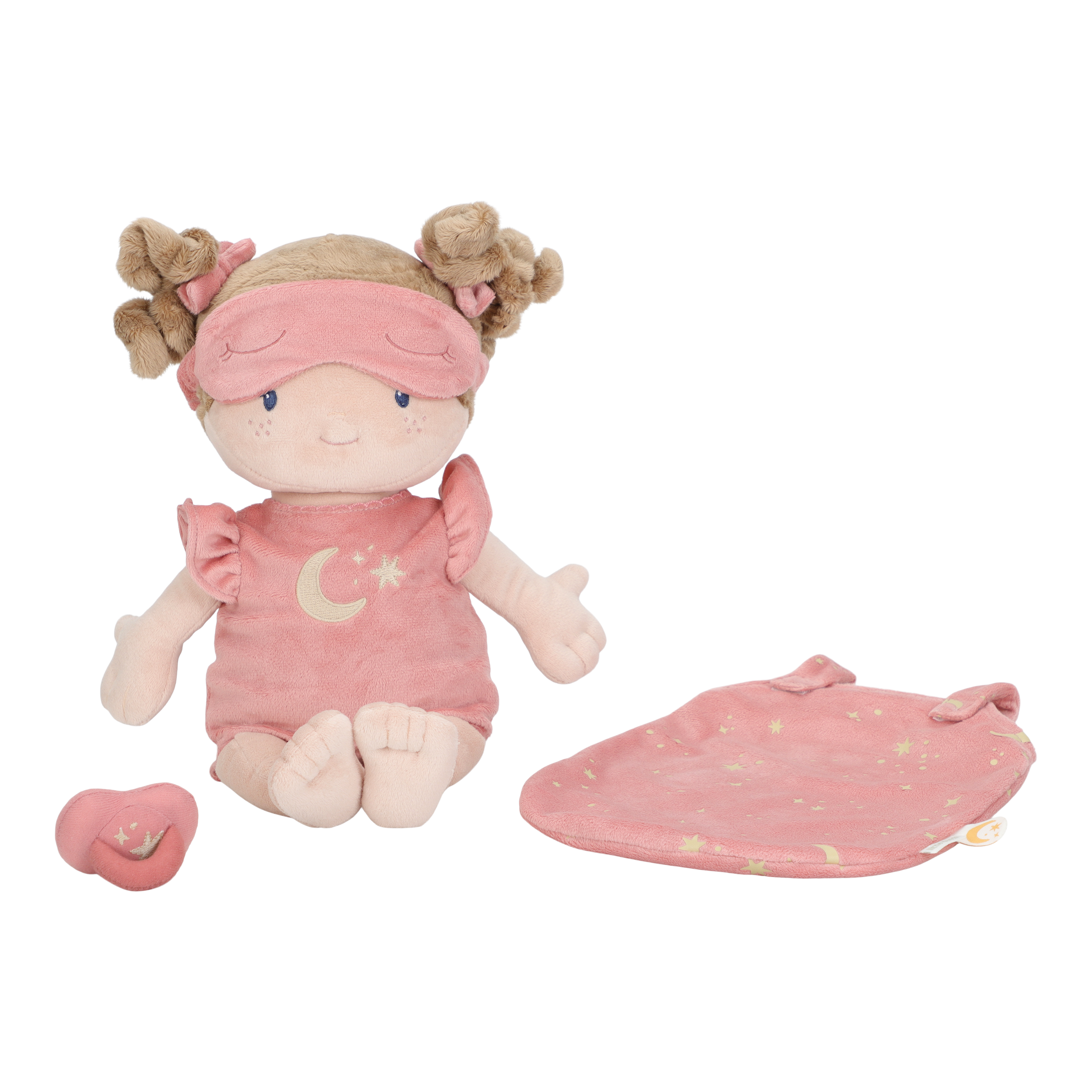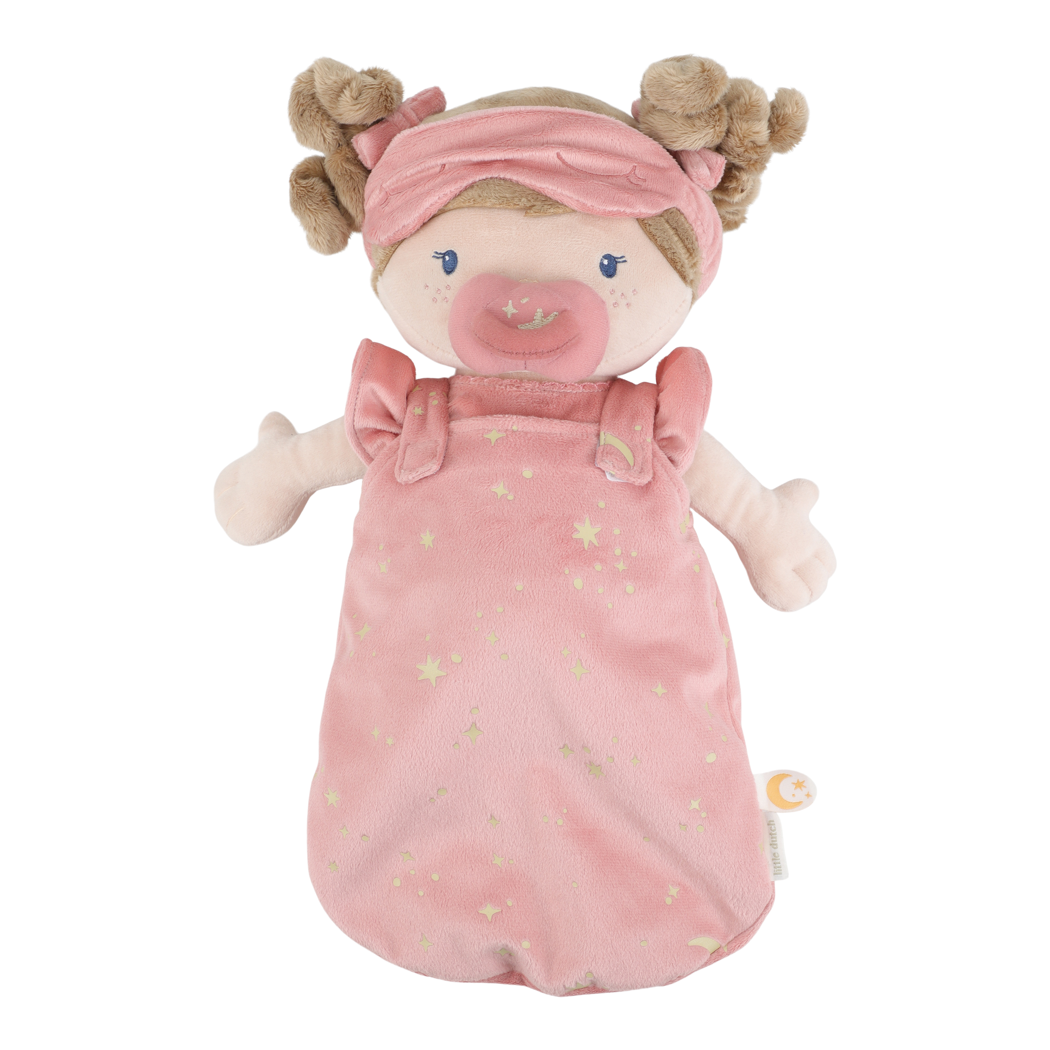 Poznaj Rosę słodką, 40‑centymetrową przytulankę z uroczymi kucykami. Ubrana w różową milutką piżamkę. W zestawie również śpiworek, opaska na oczy oraz uroczy smoczek. Rosa przychodzi w poręcznym pudełeczku z uchwytem, dzięki czemu świetnie nadaje się na prezent. Wykonana z wyjątkowo miękkiej tkaniny, zapewnia niekończące się przyjemności z przytulania i towarzyszy w każdej chwili zabawy czy odpoczynku.