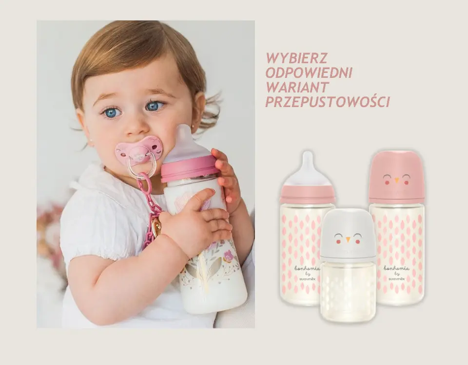 Butelka Birdies 270 ml jest kompatybilna ze wszystkimi smoczkami Suavinex SX Pro (z wyjątkiem serii Zero.Zero), co daje rodzicom możliwość dopasowania przepływu do potrzeb dziecka. Wykonana z wysokiej jakości, bezpiecznych materiałów – silikonu i plastiku wolnego od BPA – gwarantuje higienę i trwałość.