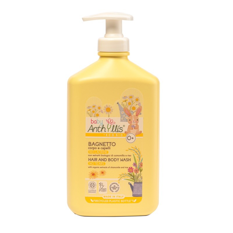 Przenieś codzienną kąpiel w krainę delikatności i beztroski z płynem do kąpieli i mycia włosów Baby Anthyllis bez łez.