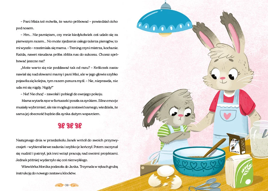 Jak odnaleźć w sobie siłę, gdy coś budzi w nas strach? Jak nauczyć się nowych rzeczy, gdy wydają się tak trudne i nieosiągalne? Jak odkryć w sobie pokłady cierpliwości? Bohaterowie książki mierzą się z różnymi wyzwaniami. Ksawery próbuje opanować jazdę na rowerze, Hania pragnie zdobyć górski szczyt, a Lolo stara się zrozumieć, dlaczego jego brat jest we wszystkim lepszy.