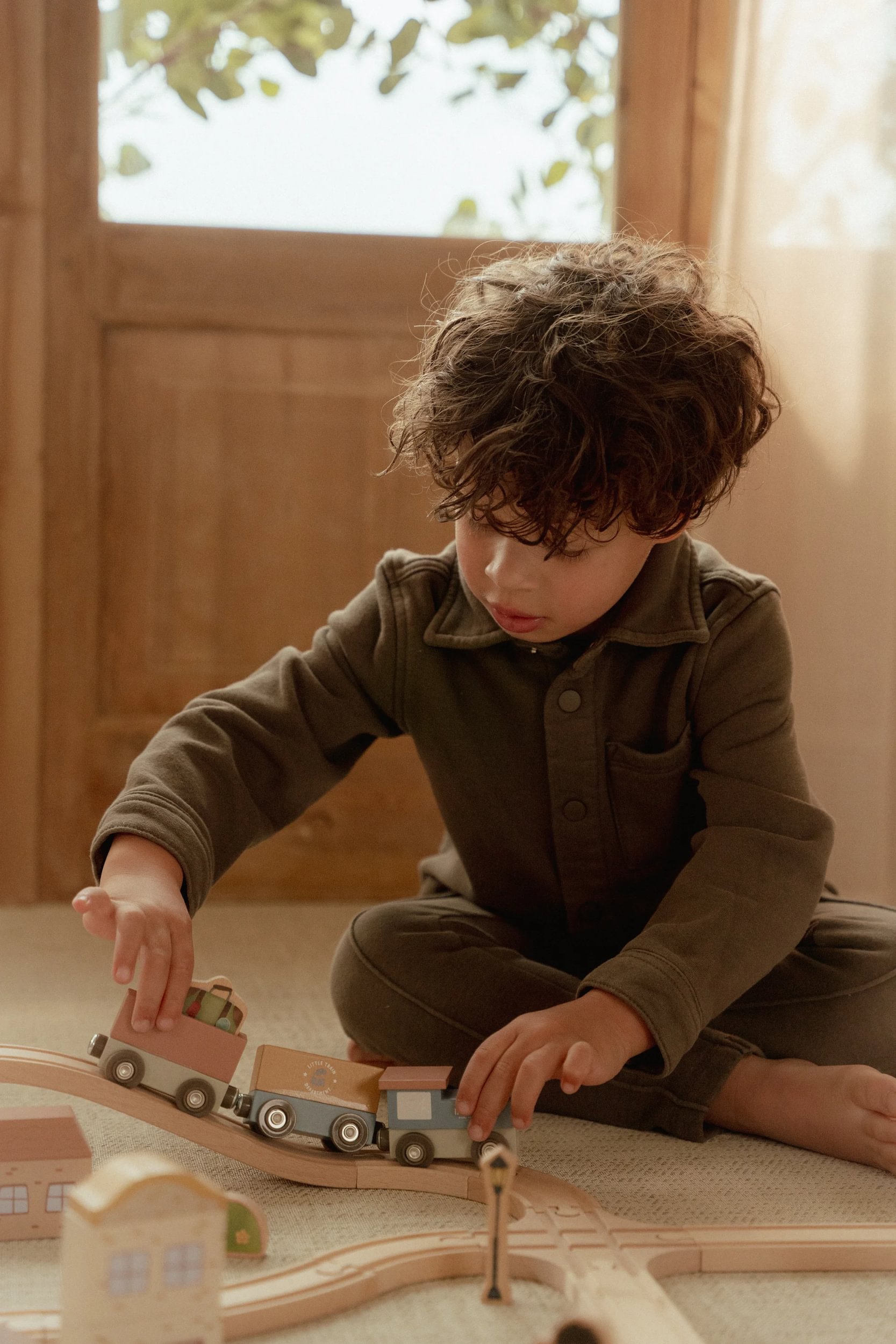 Kolejka drewniana LITTLE DUTCH to niekończące się przygody dla wszystkich małych miłośników podróży koleją. Wsiądź do pociągu, autobusu, taksówki lub samochodu i odkrywaj okoliczne miasta. Znajdziesz w nich piękne domy, sklep, szkołę, kościółek i wiele innych, ciekawych miejsc. Po drodze spotkamy zwierzątka i drzewa. Zwracaj tylko uwagę na znaki drogowe przy trasie!
