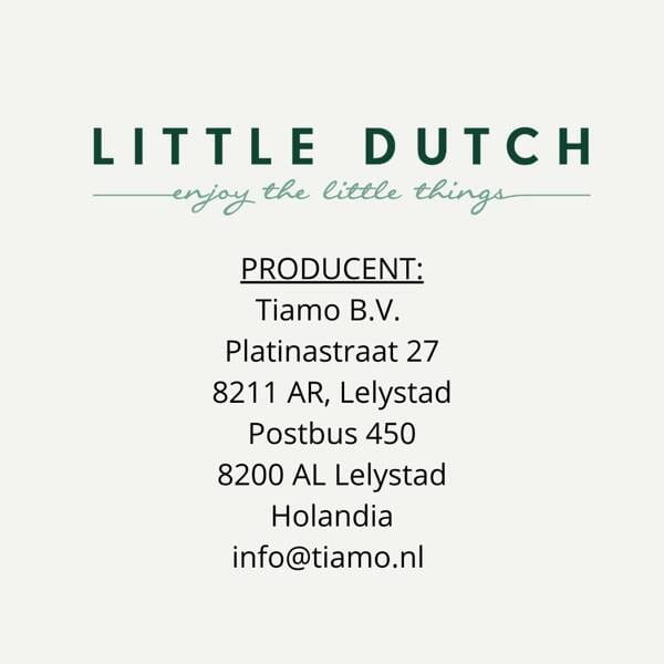 Little Dutch to holenderska firma rodzinna, prowadzona przez małżeństwo, które wkłada całe serce w tworzenie produktów dla najmłodszych. W ofercie marki znajdują się doskonałej jakości tekstylia, produkowane z bawełny organicznej z certyfikatem Oeko-tex, takie jak ręczniki, śpiworki do spania, otulacze, akcesoria do pokoików dziecięcych oraz zabawki sensoryczne dla niemowląt, jak również zabawki, czy pojazdy wytwarzane z drewna. Produkty Little Dutch cechuje spokojna, pastelowa kolorystyka.