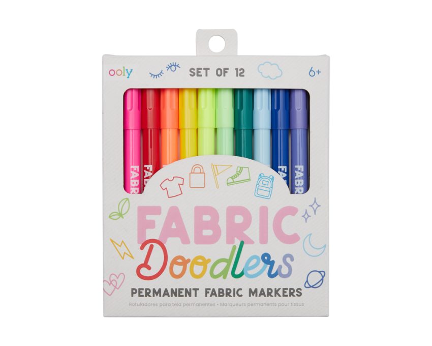 Zestaw flamastrów do tkanin od firmy OOLY to 12 trwałych kolorów, dzięki którym ozdobisz swoje tenisówki, dżinsy lub T-shirt. Co więcej, tych markerów do tkanin można używać na zwykłych akcesoriach, takich jak plecak, czy torba! Nadaj swoim rzeczom i ubraniom swój charakterystyczny styl.