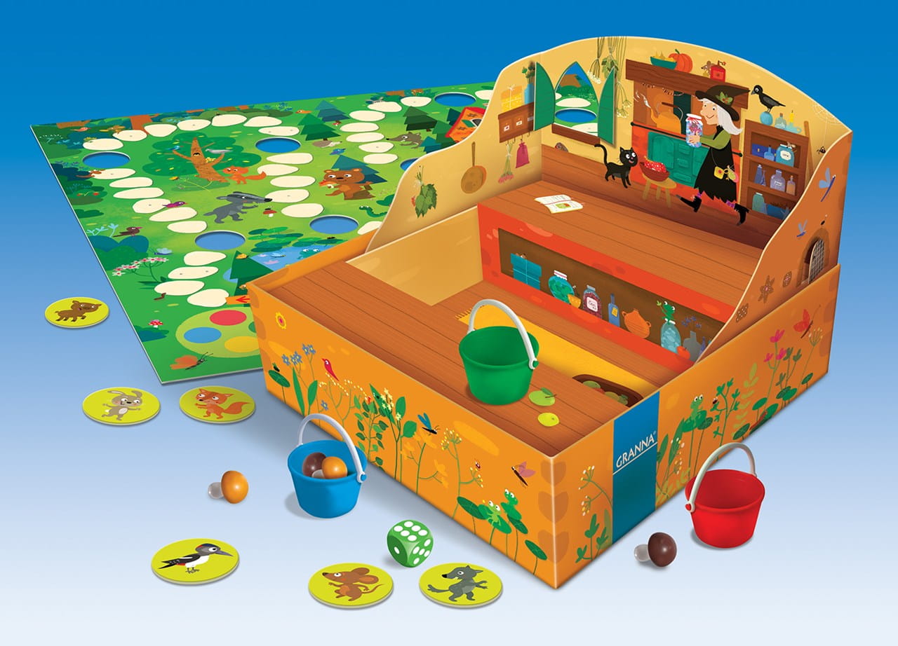 Zapraszamy na niezwykłą wyprawę! Grzybobranie w zaczarowanym lesie to klasyczna gra planszowa w zupełnie nowej wersji. Zasady gry zostały wzbogacone poprzez pojawienie się zwierzątek, które mogą pomagać lub przeszkadzać podczas wędrówki. Na śmiałków czyha też wiedźma, która zrobi wszystko, by pokrzyżować ich plany. Urozmaicone zasady to nie jedyna nowość. Gra zyskała również fantastyczną, bajkową oprawę 3D!