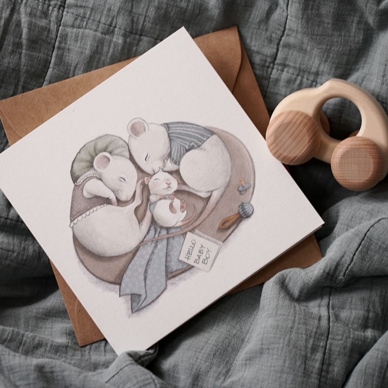 Kartka z okazji narodzin chłopca, dla wszystkich, którzy tak bardzo na nią czekali.