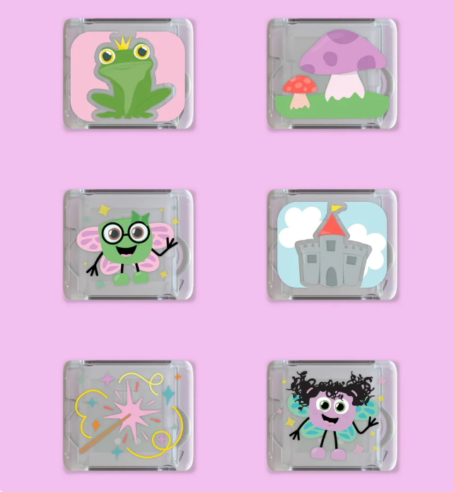 Wyrusz w magiczną podróż do świata rodem z bajki! Na każdej kostce czeka inny czarujący motyw – od uśmiechniętych wróżek, przez lśniący zamek ukryty wśród chmur, aż po migoczącą różdżkę, która potrafi odmienić każde zaklęcie w niezwykłą przygodę. To idealny zestaw dla dzieci kochających baśniowy klimat i kreatywną zabawę.