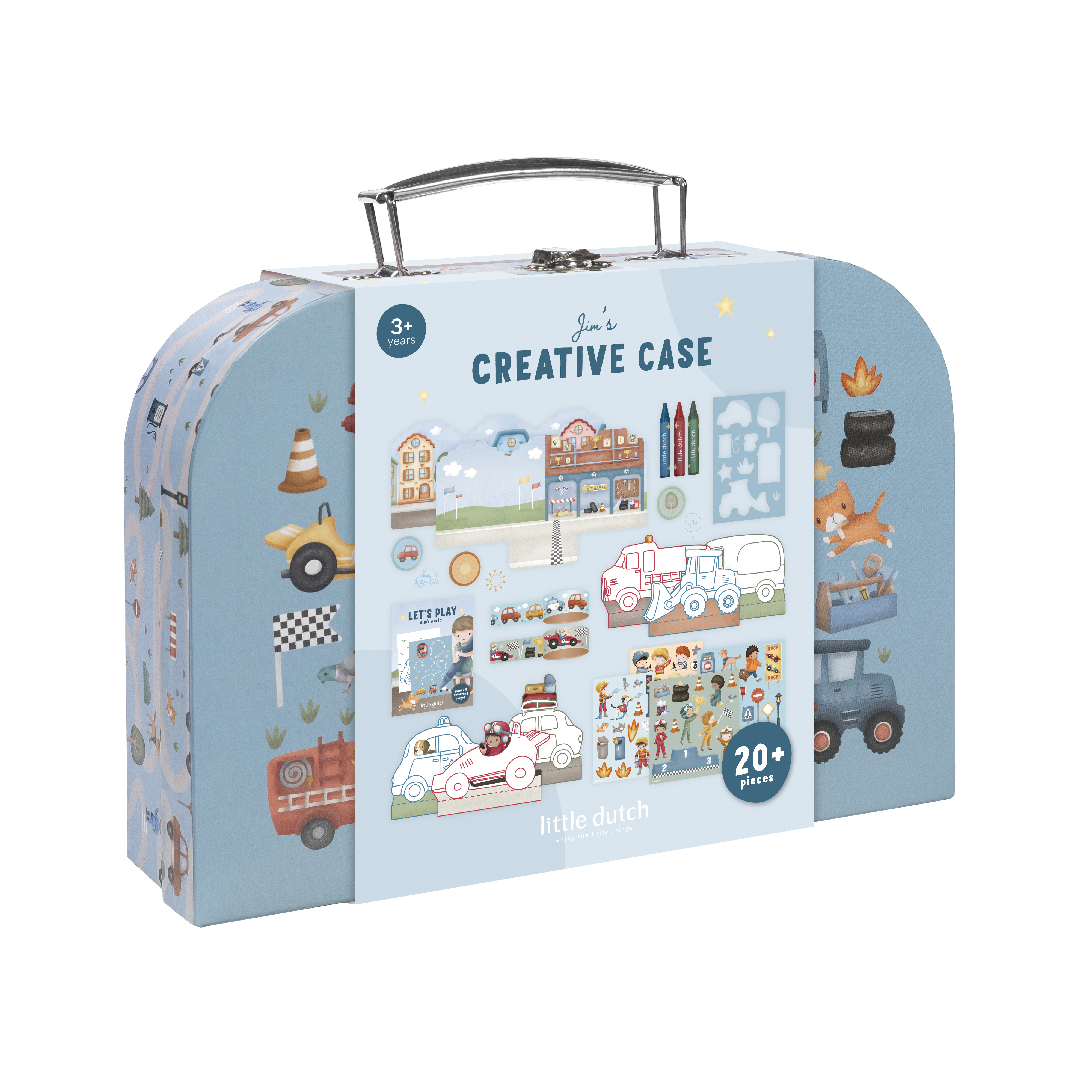 Kreatywna walizka Jim & Friends od Little Dutch. To prawdziwy skarb dla małych artystów, którzy uwielbiają tworzyć, eksperymentować i odkrywać świat sztuki na własnych zasadach. Zamknięta w poręcznej, pięknie zdobionej walizeczce, kryje w sobie zestaw materiałów plastycznych, które inspirują do godzin twórczej zabawy. Dziecko może malować, kolorować, wyklejać i tworzyć własne małe dzieła sztuki, rozwijając przy tym wyobraźnię, koncentrację i zdolności manualne.