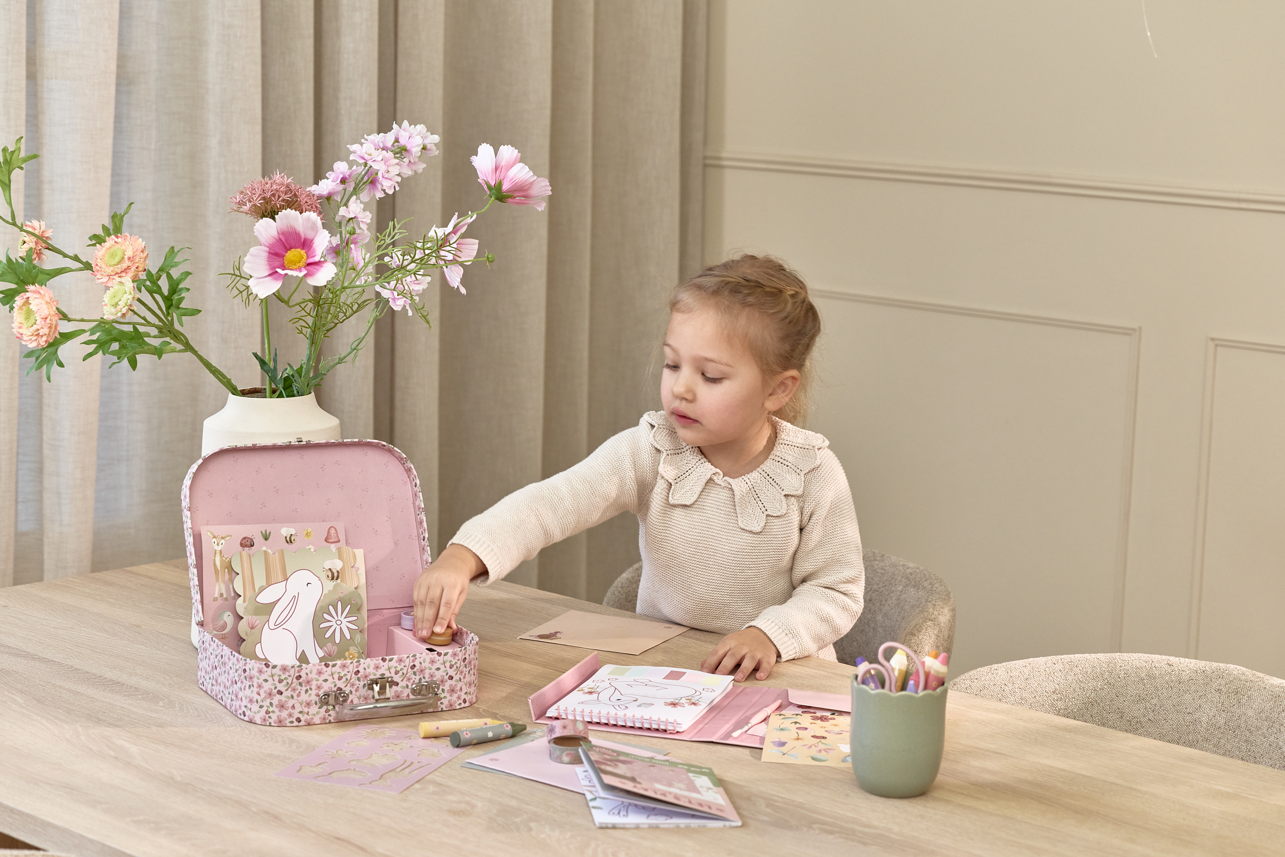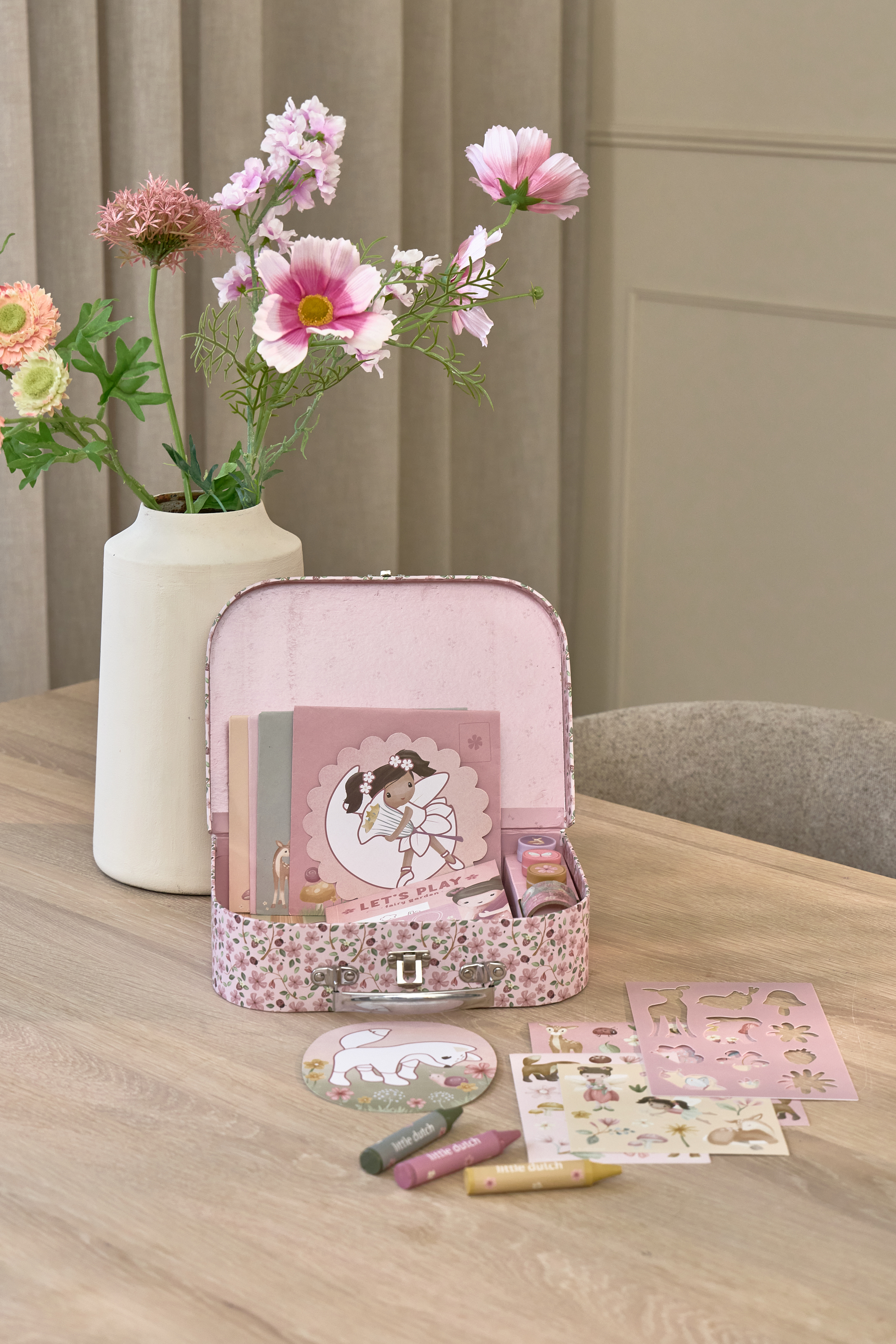 Walizka została zaprojektowana tak, by była wygodna do przenoszenia i idealna zarówno w domu, jak i w podróży. Pastelowa, charakterystyczna dla Little Dutch estetyka sprawia, że zestaw jest nie tylko praktyczny, ale też wyjątkowo uroczy. To doskonały pomysł na prezent, który zapewni kreatywną zabawę bez końca i pozwoli dziecku odkrywać radość tworzenia w najpiękniejszy sposób.