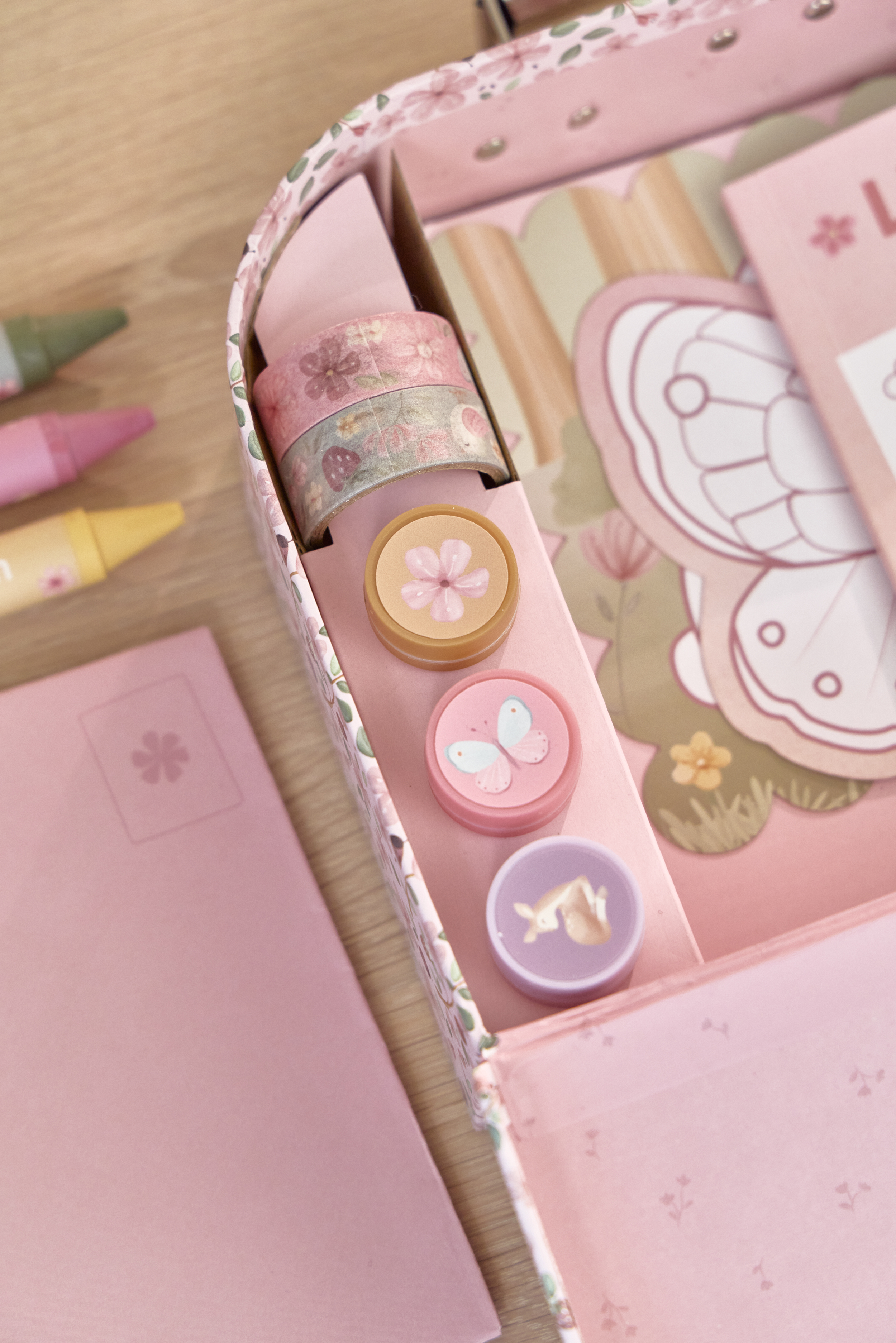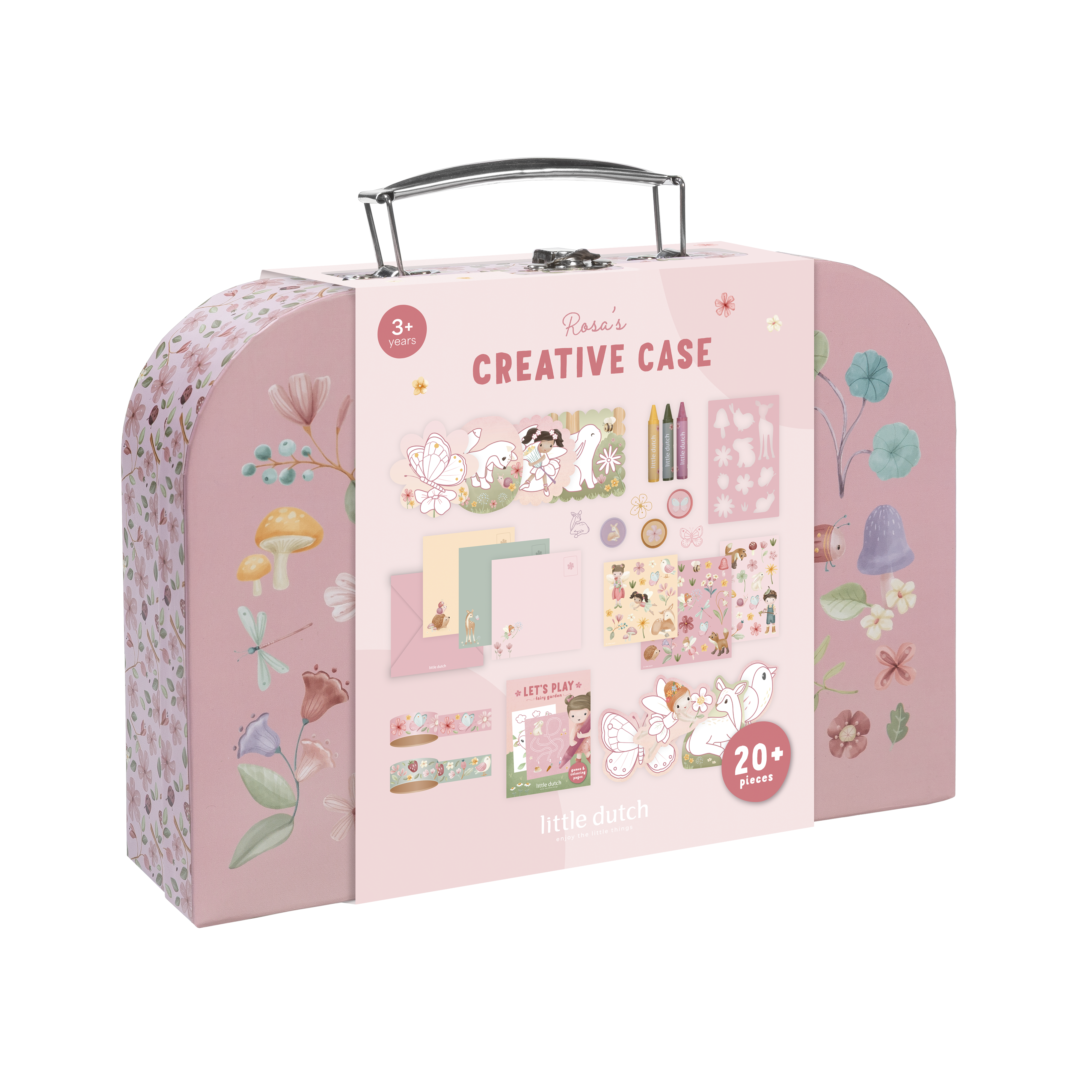 Kreatywna walizka Rosa & Friends z kolekcji Fairy Garden od Little Dutch. To prawdziwy skarb dla małych artystów, którzy uwielbiają tworzyć, eksperymentować i odkrywać świat sztuki na własnych zasadach. Zamknięta w poręcznej, pięknie zdobionej walizeczce, kryje w sobie zestaw materiałów plastycznych, które inspirują do godzin twórczej zabawy. Dziecko może malować, kolorować, wyklejać i tworzyć własne małe dzieła sztuki, rozwijając przy tym wyobraźnię, koncentrację i zdolności manualne.