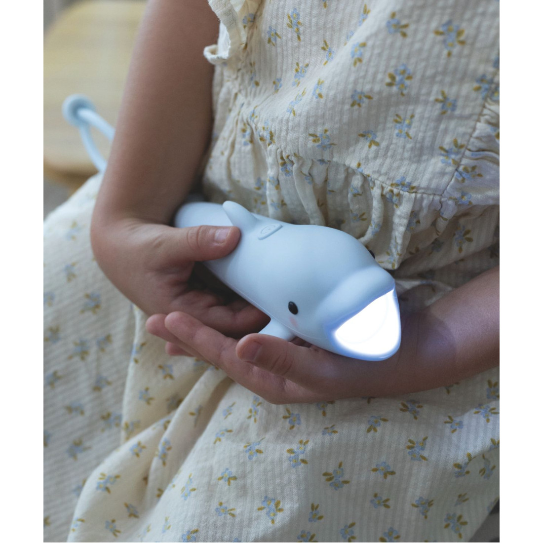 Latarka w kształcie delfina, pokryta miękkim silikonem, to połączenie zabawy i funkcjonalności. Dzięki poręcznej regulacji jasności sprawdzi się doskonale podczas wieczornych przygód, teatrów cieni i opowiadania bajek na dobranoc. Ładowana przez kabel USB-C, zapewnia wygodę i długie godziny użytkowania. Zawieszka umożliwia powieszenie latarki tam, gdzie jest najbardziej potrzebna.