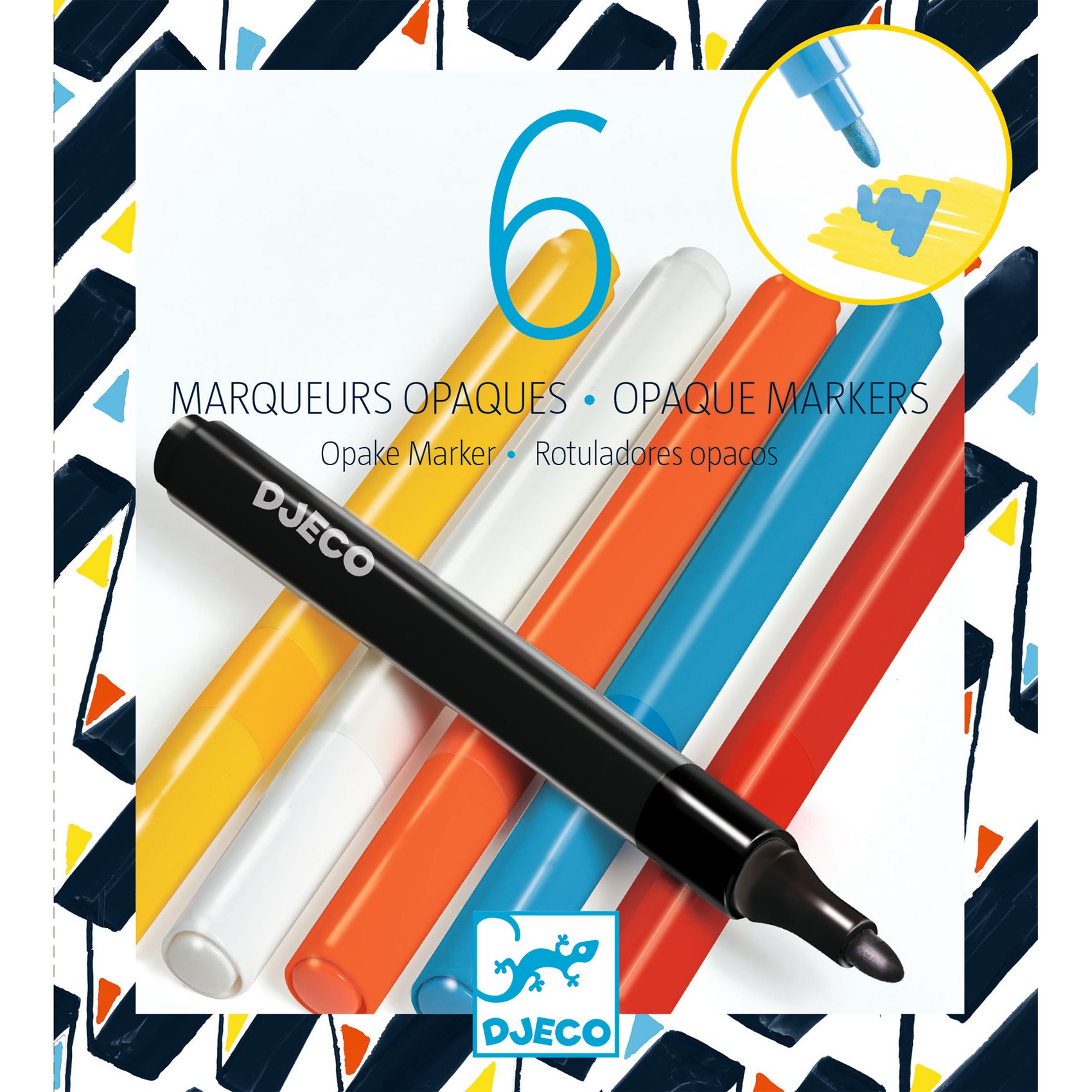 - 6 matowych markerów (żółty, biały, pomarańczowy, niebieski, czerwony, czarny)