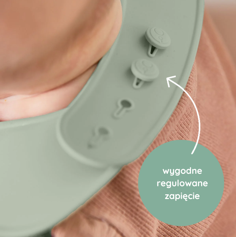 Praktyczny silikonowy śliniaczek z wygodną kieszonką na resztki jedzenia. Sprawdzi się zarówno w domu, jak i poza nim. Wodoodporny i łatwy do utrzymaniu w czystości – wystarczy przetrzeć go wilgotną szmatką lub zmyć pod wodą. Można go bez problemu zwijać i używać podczas wycieczek. To wygodne rozwiązanie podczas posiłku, które gwarantuje czystość i wygodę. Śliniak posiada regulowane zapięcie, a materiał jest miękki i przyjemny w dotyku. Silikonowy śliniak nie krępuje ruchów i jest delikatny dla skóry, więc maluchy z chęcią dadzą go sobie założyć.