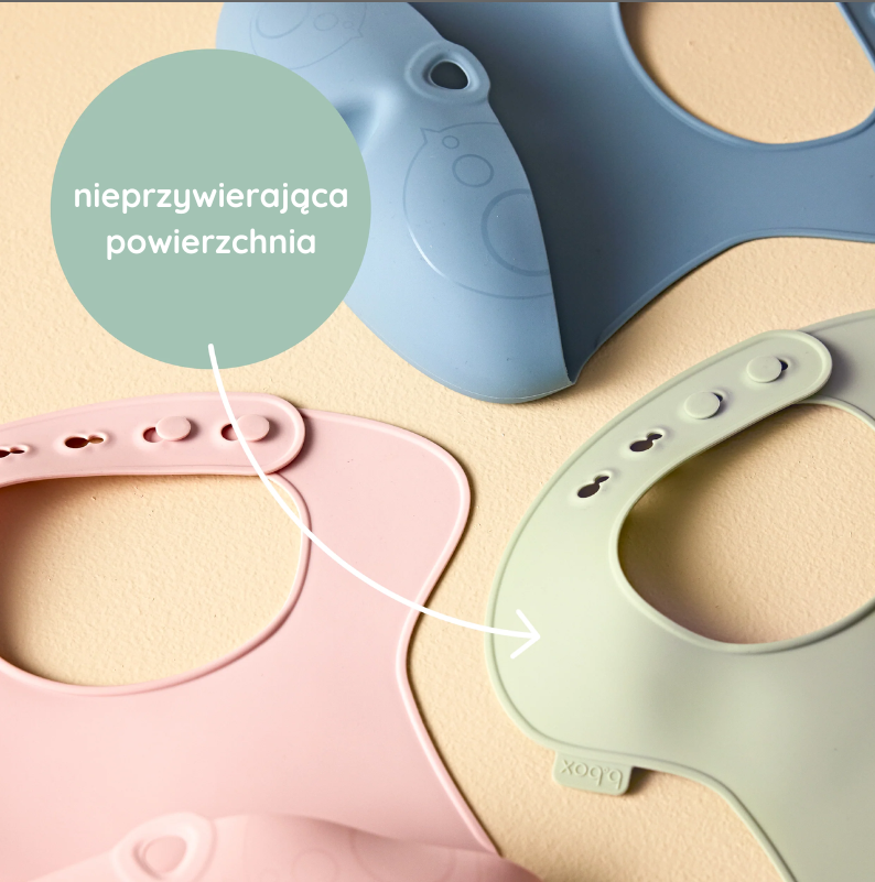 - Nieprzywierająca powierzchnia, nawet wtedy, gdy śliniak jest mokry.