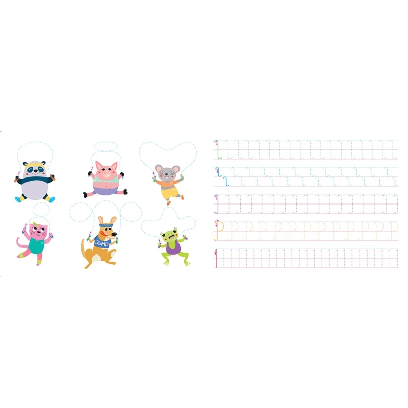 W tej edukacyjnej książeczce znaleźć można zarówno tradycyjną naukę pisania po śladzie wzorów literopodobnych, jak i atrakcyjne zabawy motoryczne.