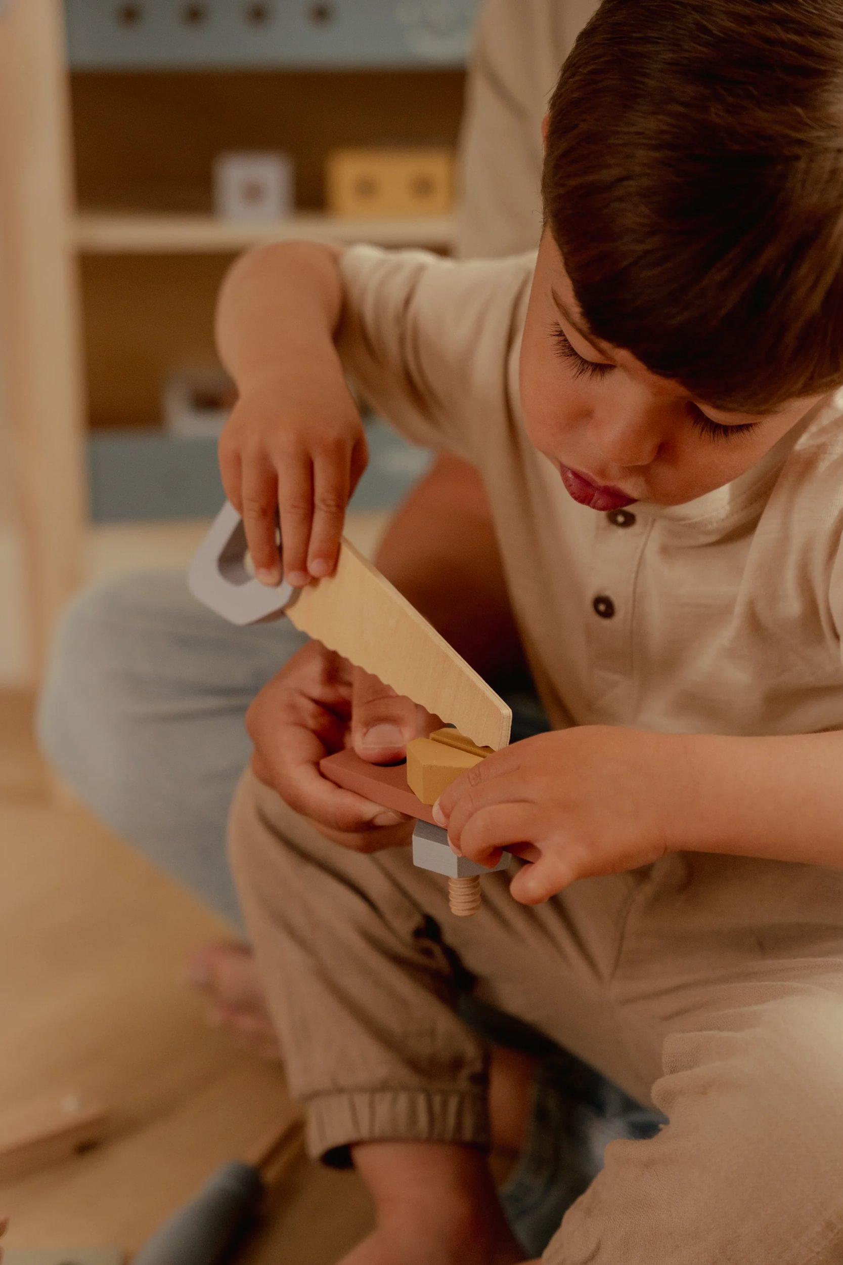 Ten zestaw to nowa odsłona kolorystyczna zestawu małego majsterkowicza, wykonany jest z drewna z certyfikatem FSC.