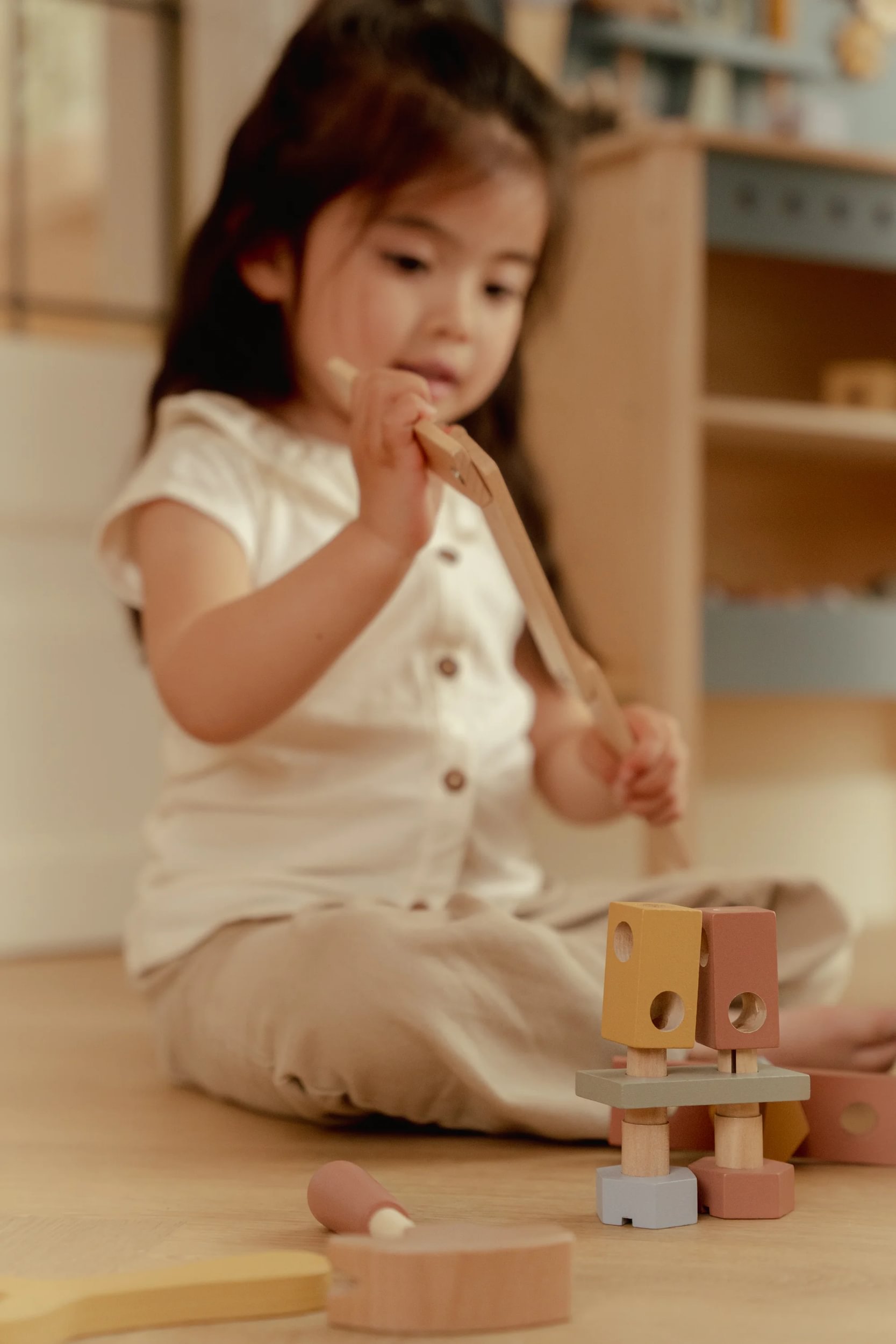 Materiał: drewno z certyfikatem FSC, malowane farbami na bazie wody, bezpiecznymi dla dzieci